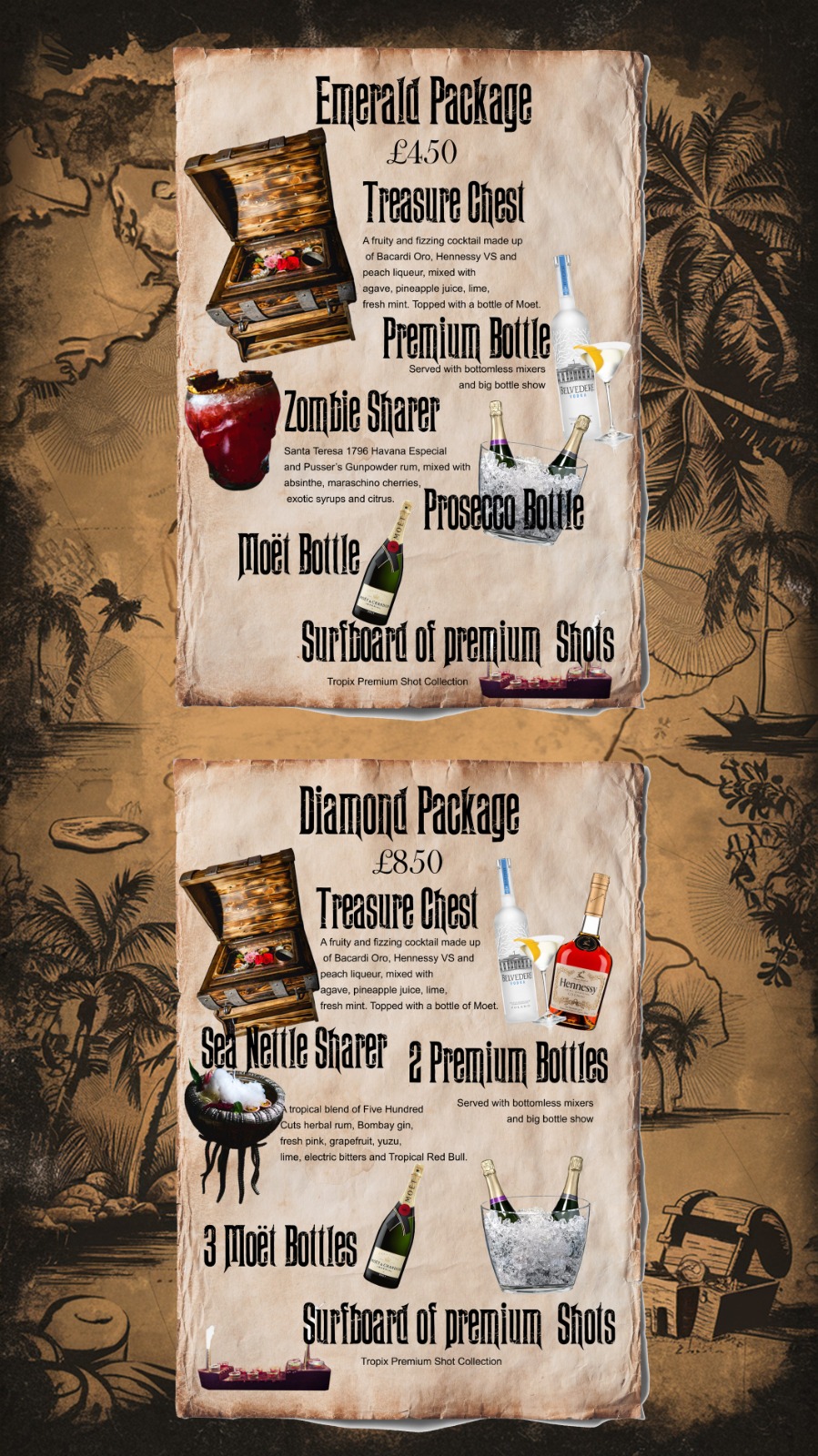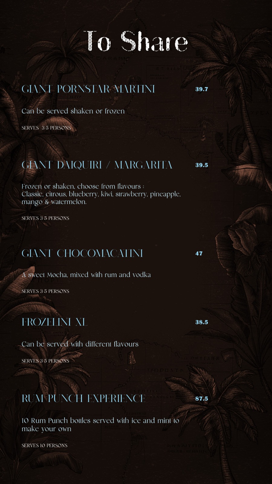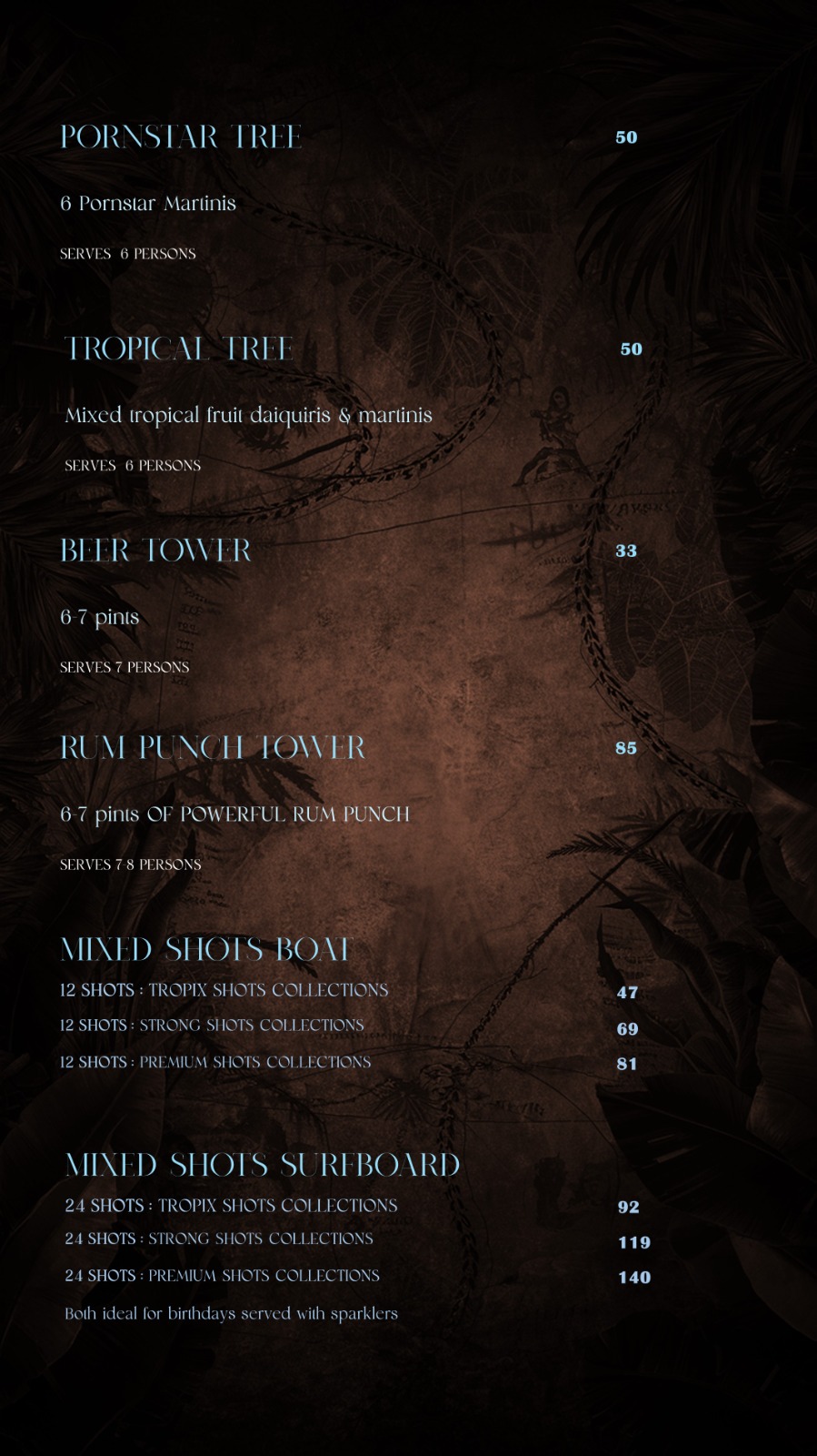 Giant Sharing cocktails, beer towers, fruity mocktails, spirits and wines we have it all at Tropix.