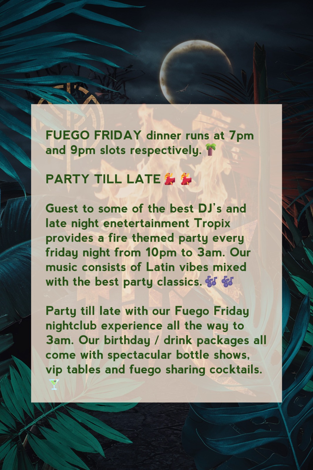 fuego friday at tropix friday night event